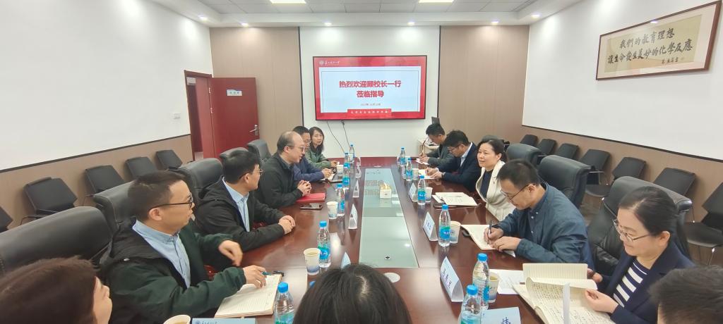 2025年10月23日上午,校长顾菊平来化学与生命科学学院走访调研。校研究生院院长孙国华、党委教师工作部部长、人事处处长徐本连、资产与实验室管理处处长马春兰、党委办公室副主任刘兆杰、学生处副处长崔炜、学院班子成员参加了调研汇报会。