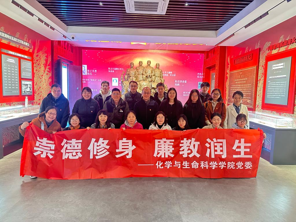 为深入学习贯彻习近平新时代中国特色社会主义思想和党的二十大精神和二十届二中、三中、四中全会精神,加强学院廉洁文化建设,不断增强学院师生的廉洁修身、廉洁从教、廉洁育人、廉洁治院意识,12月3日下午,化学与生命科学学院党委组织教师党员、学生党员及部分党外知识分子代表赴阳澄湖江抗纪念馆、王氏家风馆参观学习,开展“红色廉洁家风传承”主题党日暨廉洁文化教育活动。