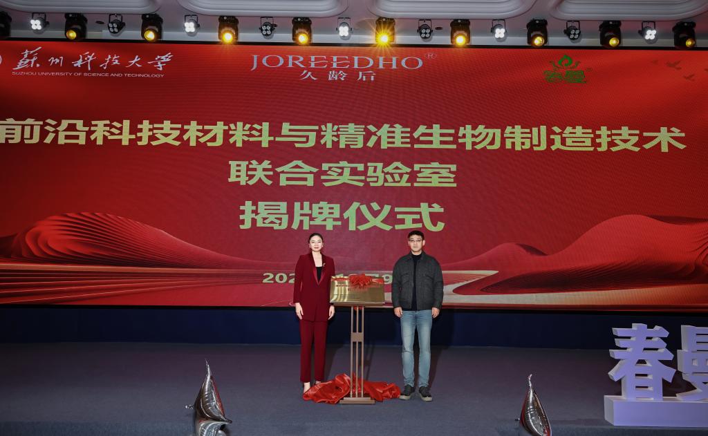 活动期间,苗雪强和蒋冰冰为“前沿科技材料与精准生物制造技术联合实验室”揭牌。该实验室将聚焦美业新材料、新技术研发及成果转化,整合学院科研优势与企业市场资源,搭建 “基础研究 — 技术开发 — 产业应用” 的一体化平台,不仅为学院师生提供实战型科研与实践岗位,也将为企业持续创新提供技术支撑与人才储备。