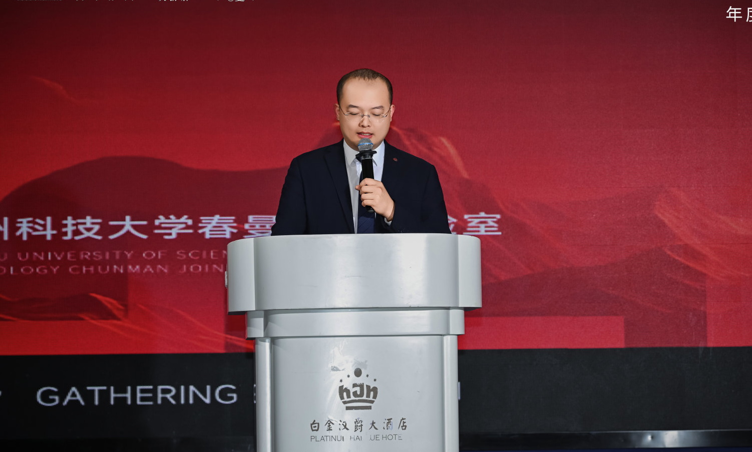 作为学院优秀校友、盛荣国际创始人鲁飞武在盛典中分享了创业历程。2014 年从材料化学专业毕业后,他深耕美业赛道十年,先后创立春曼、久龄后、久龄之谜三大知名品牌,凭借对行业趋势的精准把握和对产品研发的极致追求,构建了覆盖全国的营销网络,目前已拥有 4000 多家实体经销商,成为美业细分领域的标杆企业。鲁飞武表示,母校的学科培养为创业之路奠定了坚实基础,未来将以联合实验室为纽带,持续深化与学院的合作,助力母校学科建设与人才培养。
