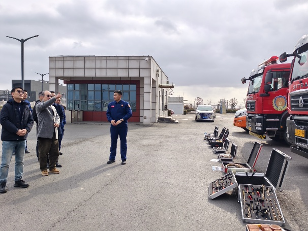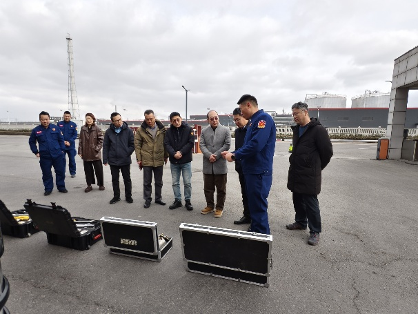 全体人员实地考察了徐圩新区陬山站消防驻点,详细了解了企业危化品应急救援队伍、先进救援装备及消防车辆等专业设施,直观掌握了企业应急服务实战能力,为后续精准合作奠定了基础。