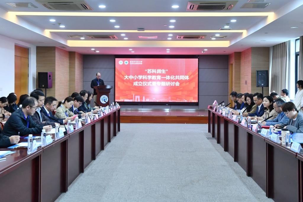 10月23日,“苏科润生”大中小学科学教育一体化共同体成立仪式暨专题研讨会在我校石湖校区图书馆八楼会议室举行。苏州科技大学副校长肖洋、苏州市科协副主席倪志强、苏州市相城区教育局副局长阙春燕等相关领导,相城区10所中小学及学校5个相关学院代表应邀参会,本次活动由苏州科技大学化学与生命科学学院主办,苏州市相城区教育局、苏州市相城区科学技术协会等单位协办,旨在协同推进大中小学科学教育一体化建设,共同构建全生命周期育人新格局。