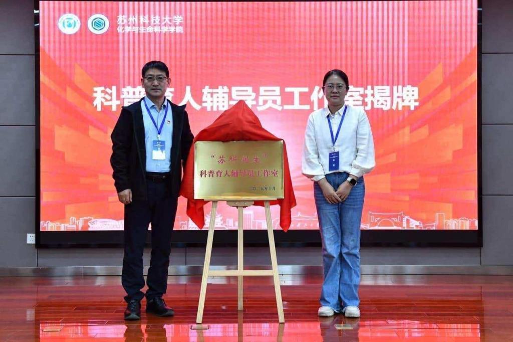 成立仪式上,苏州科技大学副校长肖洋、苏州市科协副主席倪志强共同为“苏科润生”品牌揭牌,同时为首批成员单位授牌。化学与生命科学学院副院长、科普馆党支部书记秦粉菊详细解读了“苏科润生”品牌的核心理念与实施路径,强调将以高质量党建为引领,推动科学教育深度融合、优质资源共建共享。