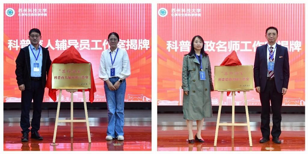 值得关注的是,仪式现场同步揭牌的化学与生命科学学院“科普思政名师工作室”和“科普育人辅导员工作室”,成为党建引领科普育人的重要载体。前者依托化学与生命科学学院科普馆党支部的先锋力量,汇聚了苏州市科普年度人物王金虎教授、江苏省科技传播专家秦粉菊教授等一批骨干人才,将聚焦思政与科学教育深度融合;后者则聚焦科普实践赋能,为大中小学科普活动开展提供专业支撑,助力全生命周期协同育人落地见效。此外,由实验中心党支部书记程宏英教授主编的《物理化学实验》思政教材正式发布,同时为高校理工科实验教学与中小学科学实践衔接提供了宝贵范本,充分彰显了党建引领下教学科研与科普育人的深度融合。