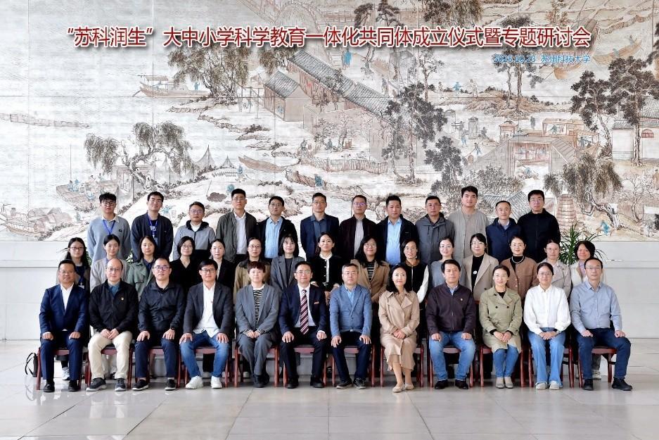 金秋十月,硕果盈枝。在党的二十届四中全会胜利召开、全国首个科普月活动圆满落幕的重要节点,苏州科技大学石湖校区图书馆内群贤毕至、暖意融融。10月23日,“苏科润生”大中小学科学教育一体化共同体成立仪式暨专题研讨会隆重举行。这一由苏州科技大学化学与生命科学学院牵头打造的育人平台,汇聚了苏州市、相城区教育与科协系统领导,以及相城区10所中小学、苏州科技大学5个相关学院的教育同仁,以高质量党建为引领,奏响了政校地协同推进科学教育一体化、赋能全生命周期育人的时代强音。