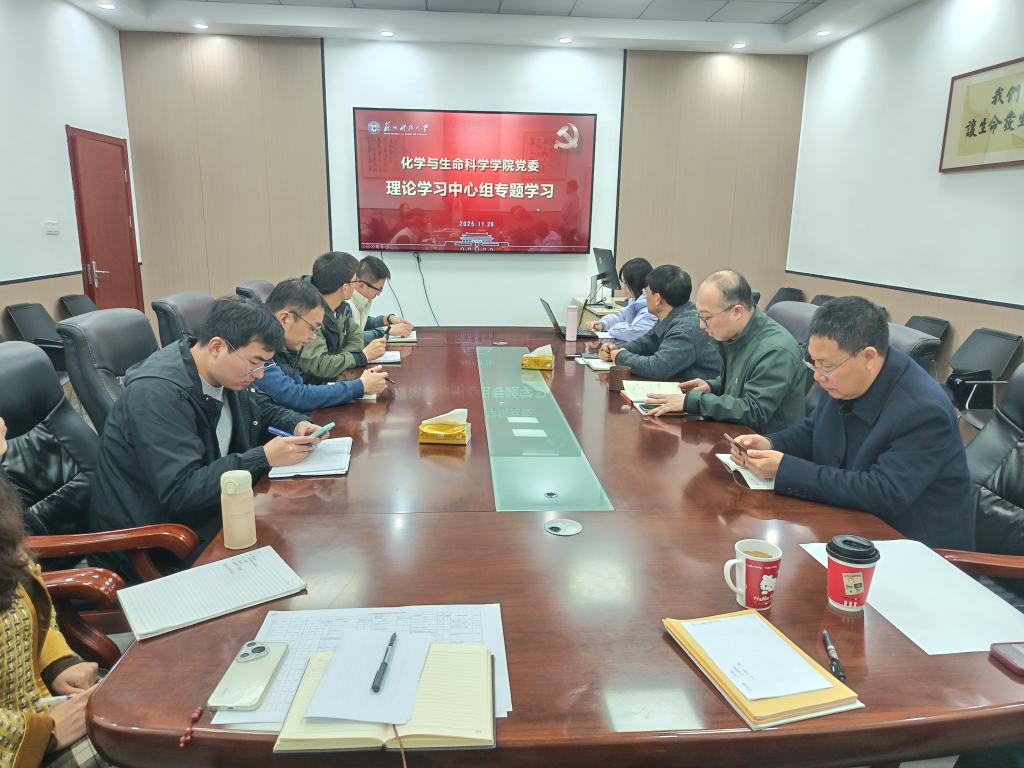 11月28日下午,化学与生命科学学院召开党委理论学习中心组(扩大)学习会,专题学习党的二十届四中全会精神。学院党委理论学习中心组成员、各支部书记及支委参加会议,院长李良智列席会议。会议由学院党委书记徐治初主持。