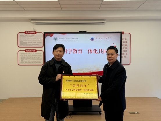 高发圣表示,王淦昌高级中学以“两弹一星”功勋科学家王淦昌先生命名,传承弘扬科学家精神是学校的精神内核。与苏科大化生学院党建共建及两大基地授牌,将为中学教育注入高校优质资源,通过党建联动让科学家精神融入教育教学全过程,为青少年成长提供精神动力与科学素养双重滋养。