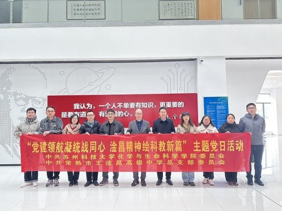 为深入学习贯彻党的二十届四中全会精神和关于一体推进教育科技人才事业发展的重要论述,落实《教育部等七部门关于加强中小学科技教育的意见》要求,近日,苏州科技大学化学与生命科学学院党委与常熟市王淦昌高级中学党总支党建共建签约仪式暨主题党日活动成功举行。双方党政领导班子成员、教师党员代表齐聚王淦昌高级中学,以科学家精神为纽带,先赴王淦昌纪念馆开展沉浸式研学,再聚焦共建核心议题深入交流,依托“苏科润生”大中小学科学教育一体化共同体,共谱校地协同育人、党建赋能区域科学教育高质量发展新篇章。