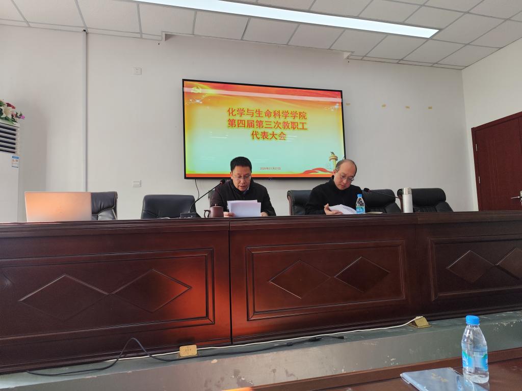 2026年1月7日下午,化学与生命科学学院第四届第三次教职工代表大会在教3楼109召开。本次大会由学院党委书记徐治初同志主持。