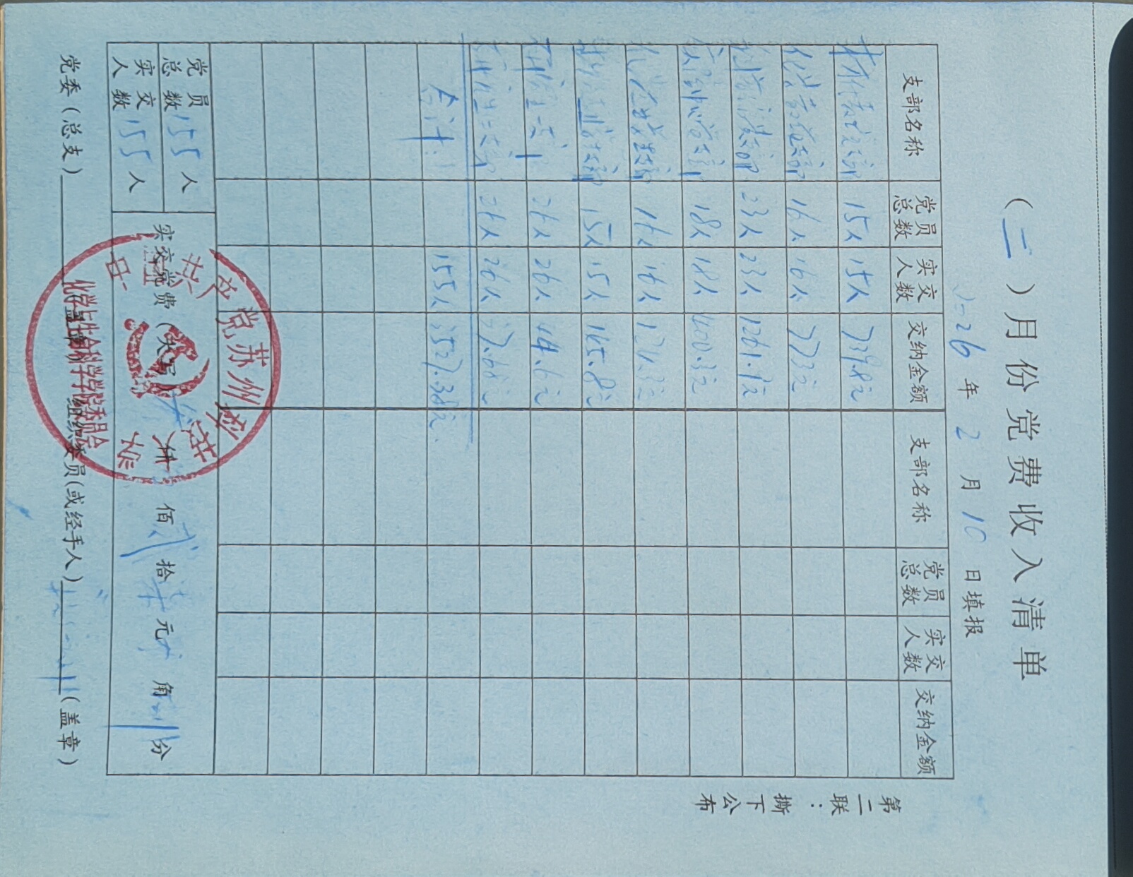 学院收到材化教工党支部、化学化工教工党支部、科普馆党支部、实验中心党支部、学生党支部155名党员交纳的2月份党费共计3527.38元。
