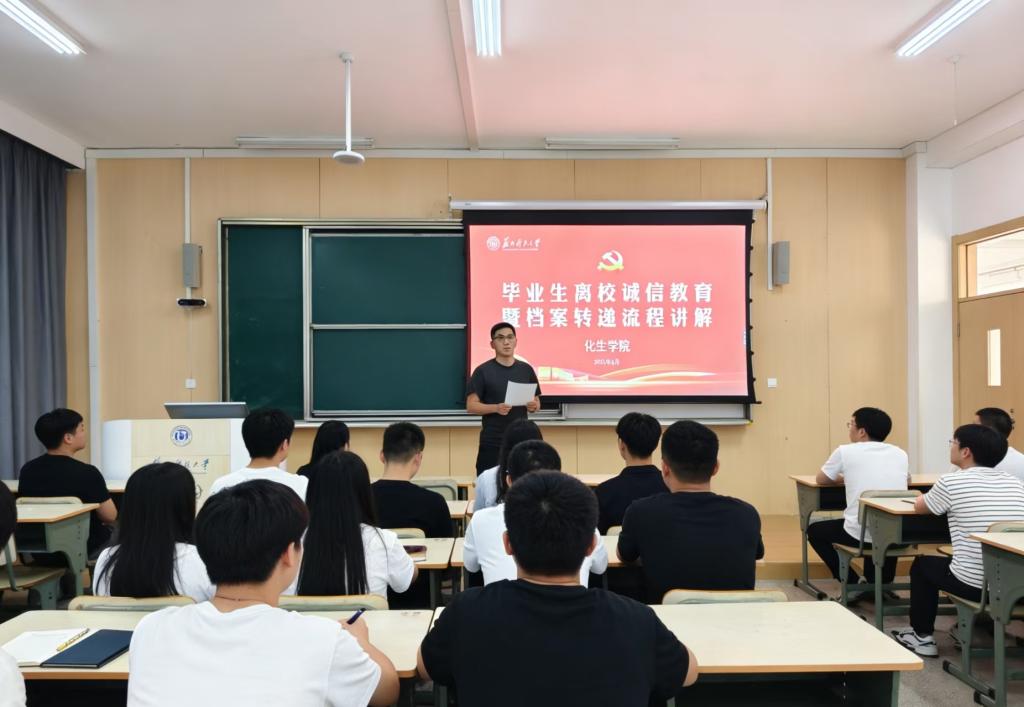 又是一年毕业季,青春逐梦赴新程。6月3日,苏州科技大学化学与生命科学学院张玄烨老师面向全体毕业生开展离校教育暨政策宣讲专题活动,围绕诚信教育、档案转接、大学生入伍政策、生源地助学贷款还款流程等关键事宜进行全面讲解,为毕业生顺利开启人生新征程筑牢保障。