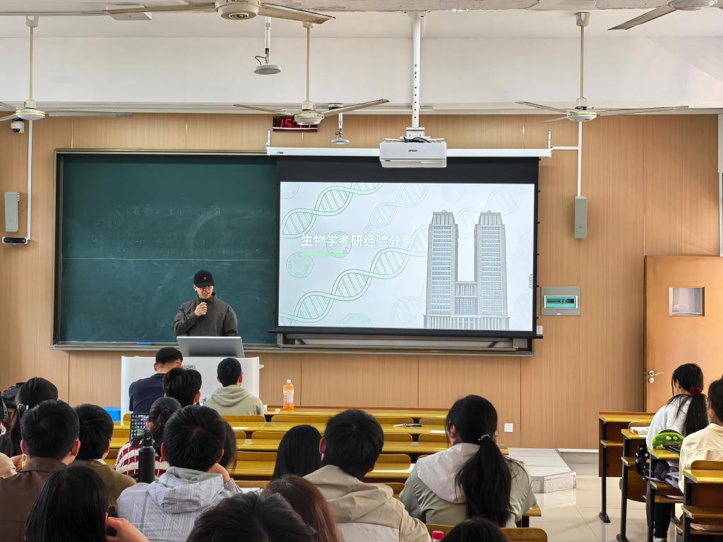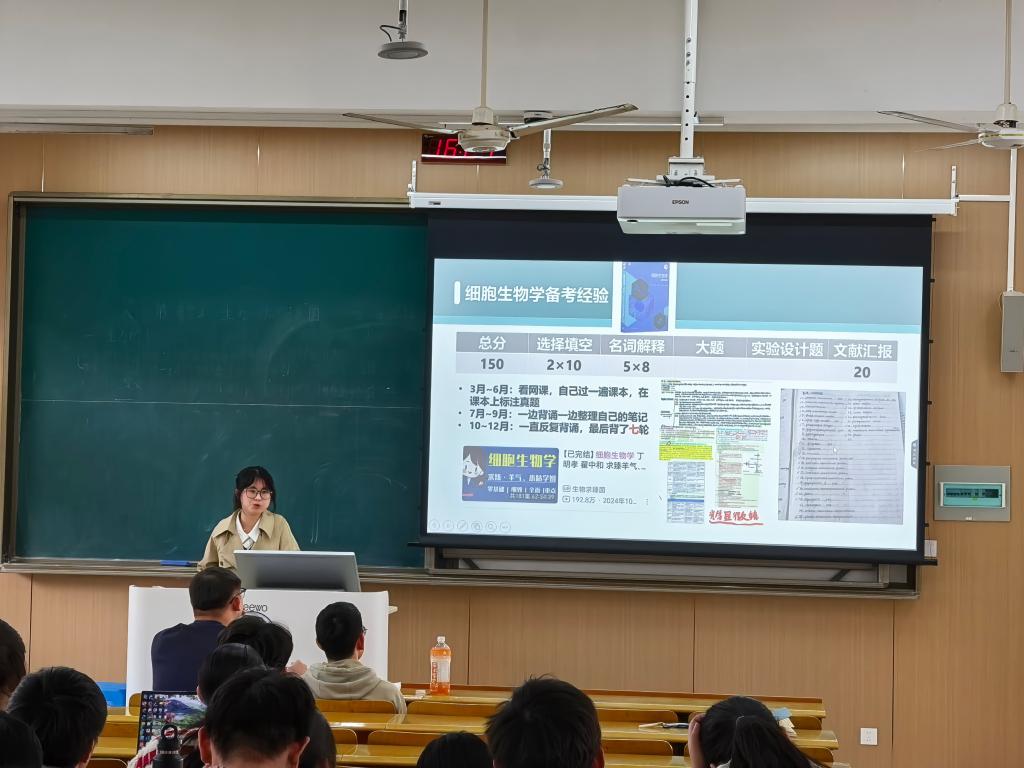 为帮助2023级生物技术专业学生明确考研目标、掌握科学备考方法,4月24日,学院在C6-204教室举办考研动员及经验交流会。本次会议特邀2022级四位成功考取国内知名高校的优秀学生代表分享考研心得,辅导员伊绵帅及专业教师张文超出席,23级生物技术专业全体学生参加。
